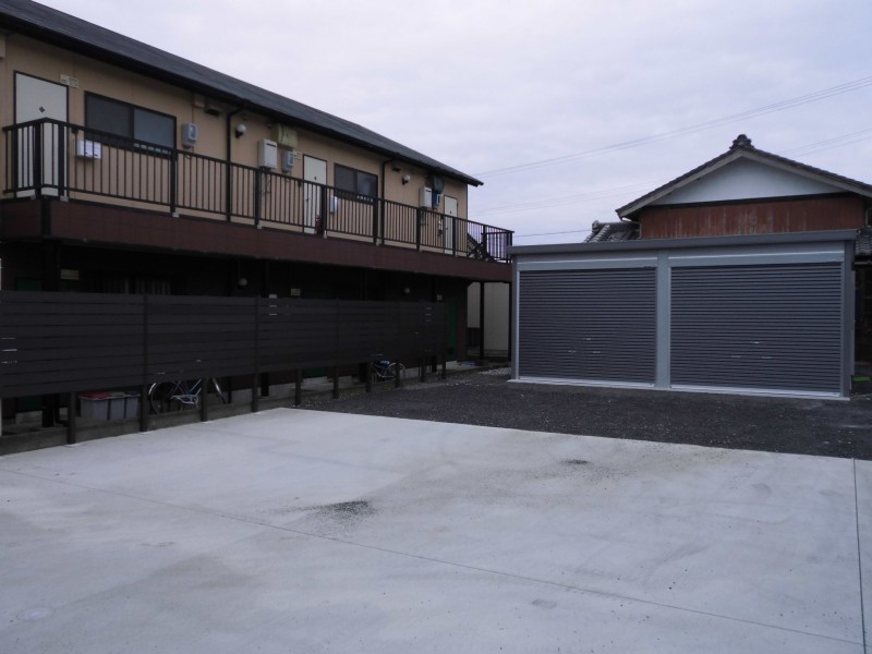 境界に目隠しフェンスを取付け問題を解消!広い土地を生かし2台用のガレージを設置。