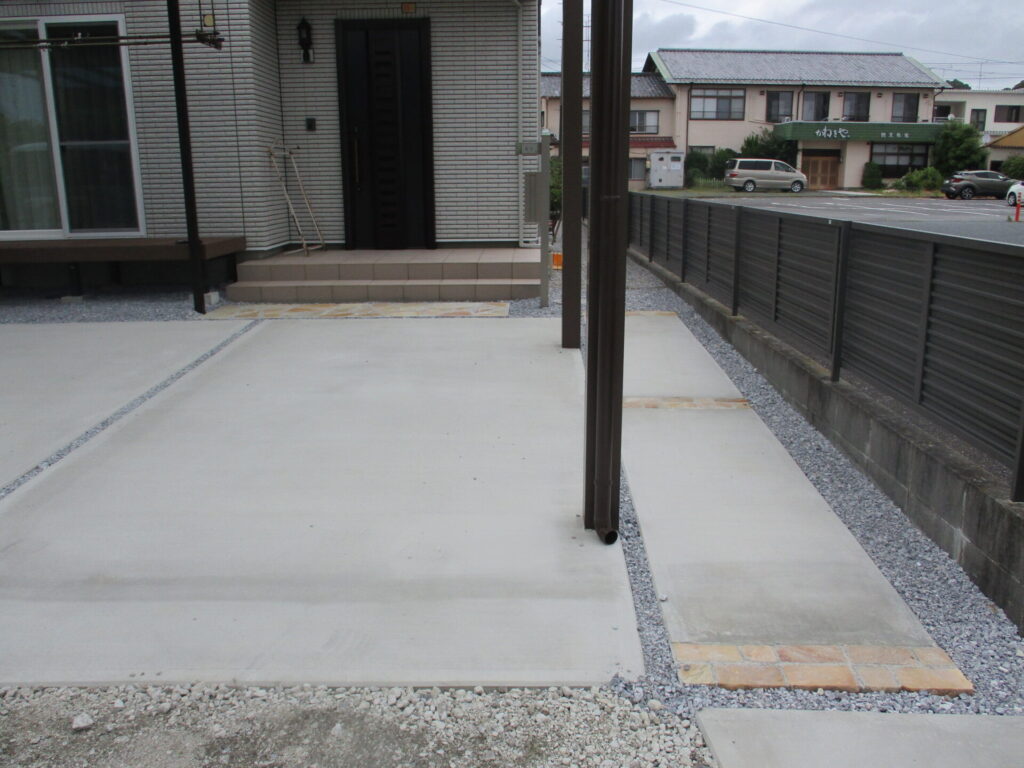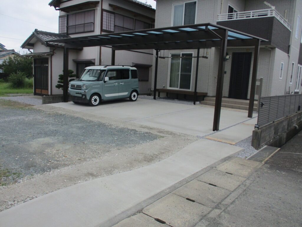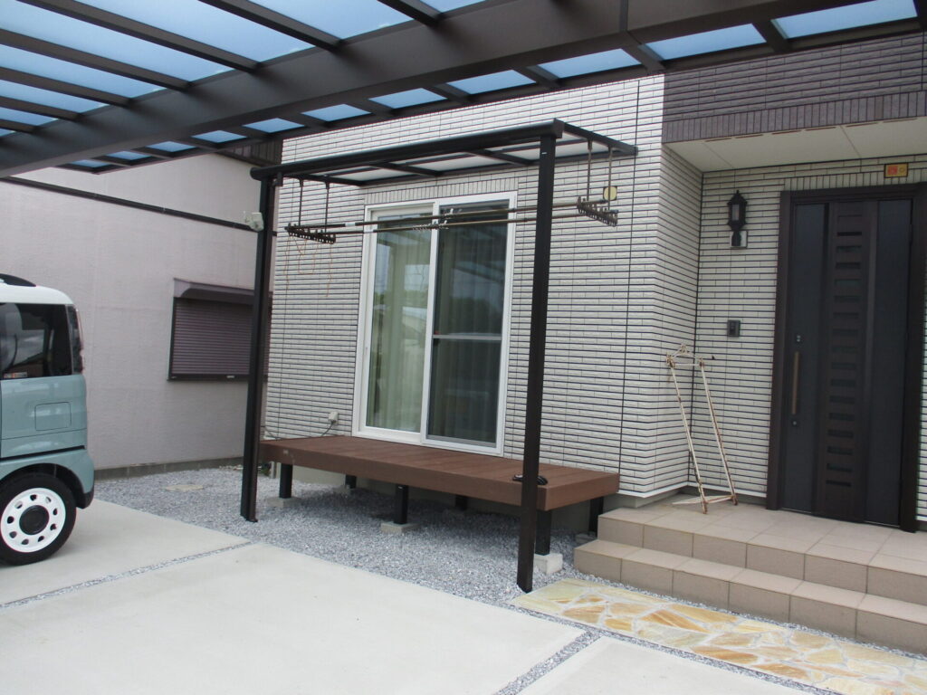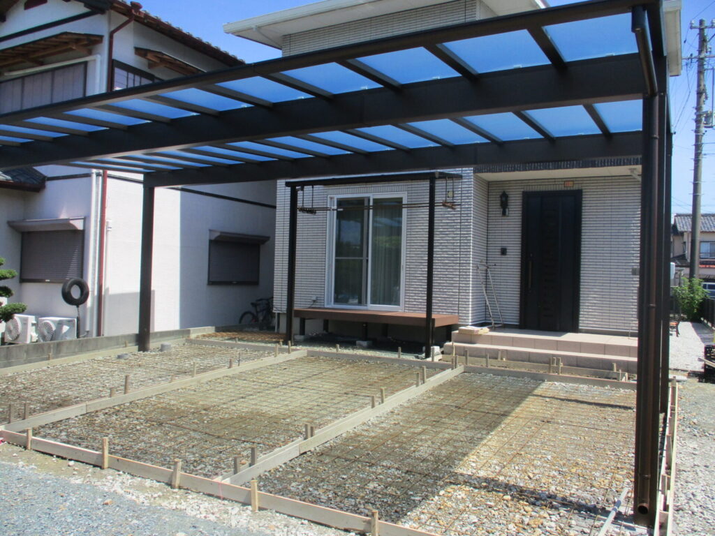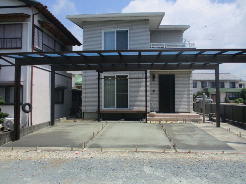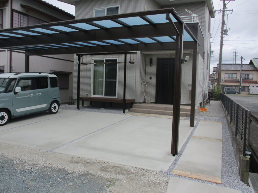 完成アプローチ工事カーポート・ガレージタイル・人工木デッキテラス・サンルーム土間・砕石・芝生掛川市