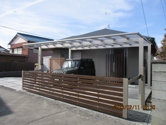 完成カーポート・ガレージタイル・人工木デッキフェンス類ポスト・表札類土間・砕石・芝生物置・倉庫門扉・門構え藤枝市