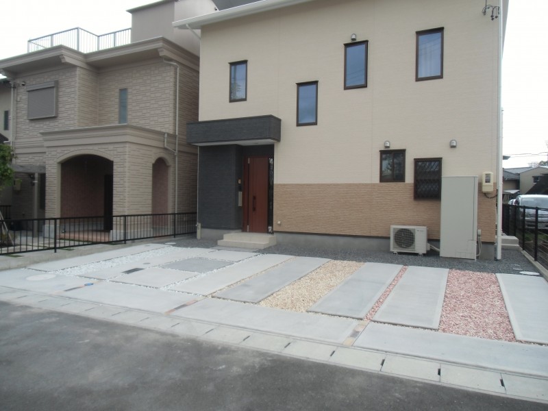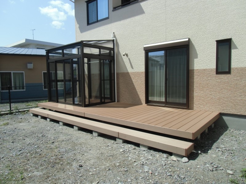施工事例タイル・人工木デッキテラス・サンルーム土間・砕石・芝生島田市