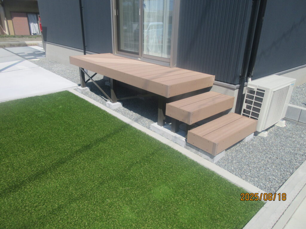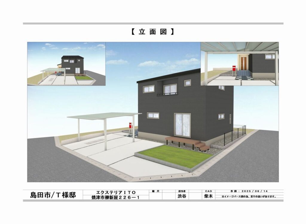 完成アプローチ工事カーポート・ガレージタイル・人工木デッキフェンス類ポスト・表札類土間・砕石・芝生外構全般島田市