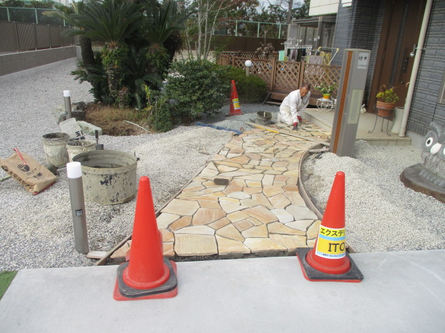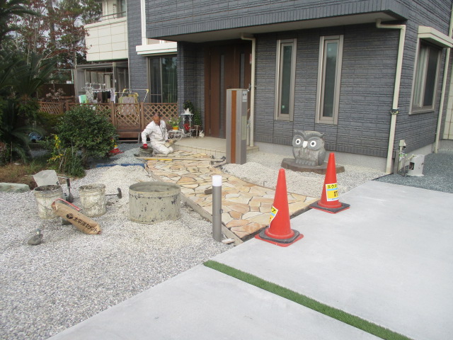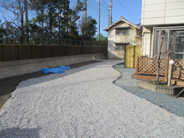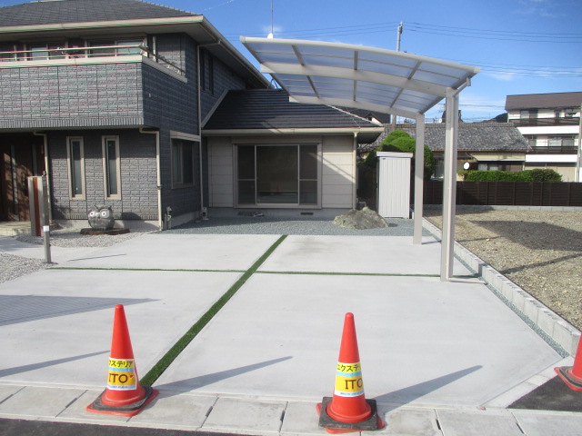 施工中アプローチ工事カーポート・ガレージその他施工フェンス類土間・砕石・芝生外構全般物置・倉庫島田市