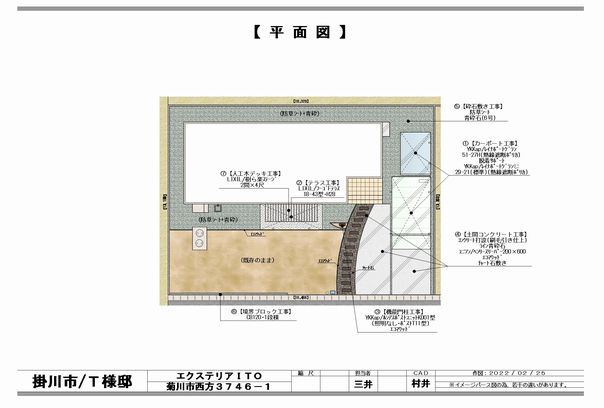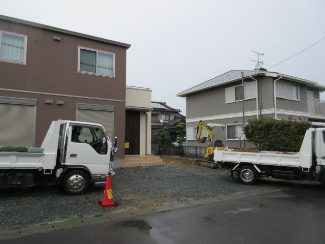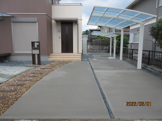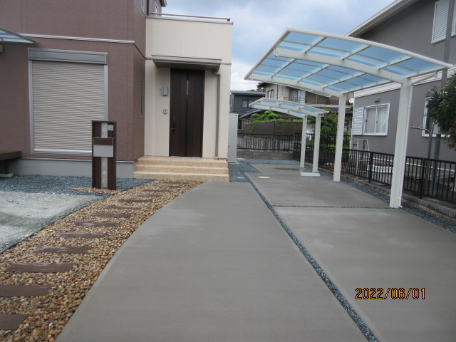 完成アプローチ工事カーポート・ガレージポスト・表札類土間・砕石・芝生外構全般掛川市