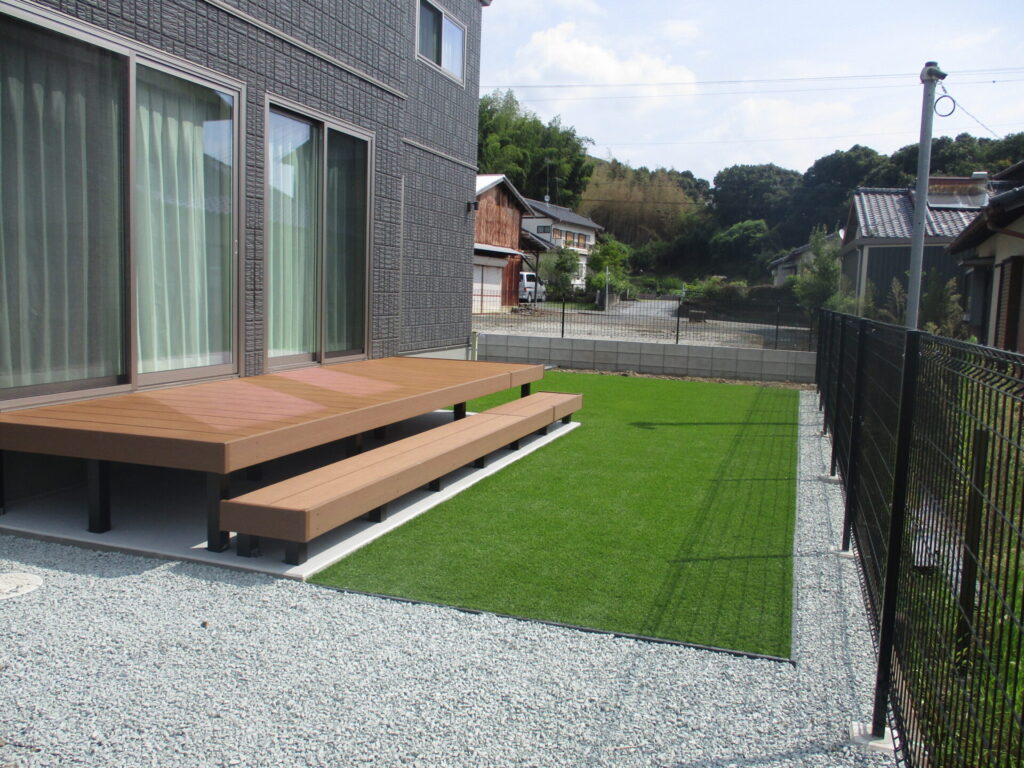 完成タイル・人工木デッキフェンス類土間・砕石・芝生外構全般森町