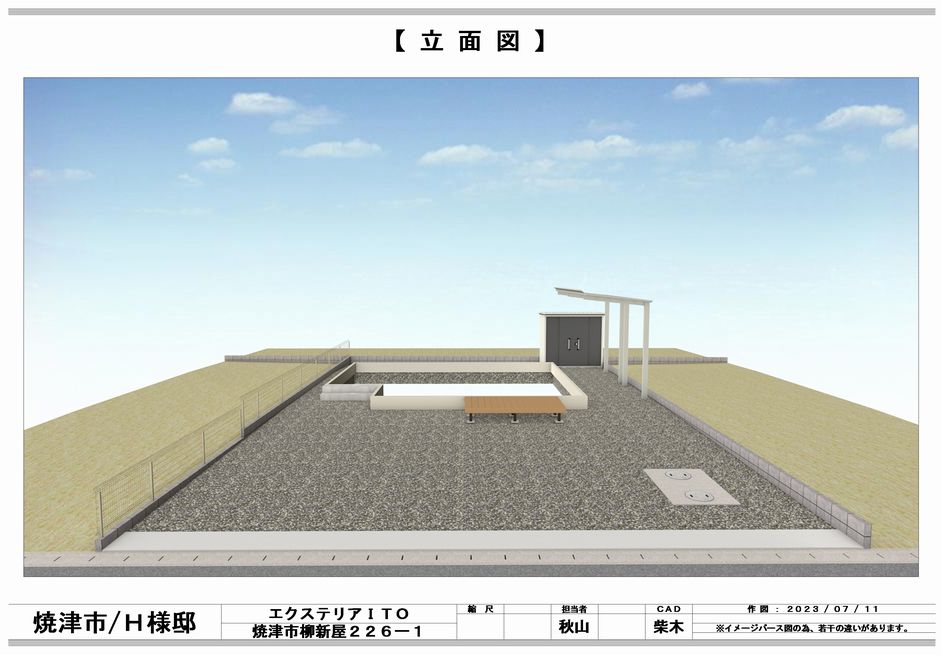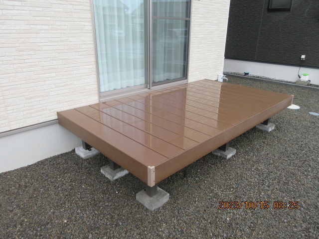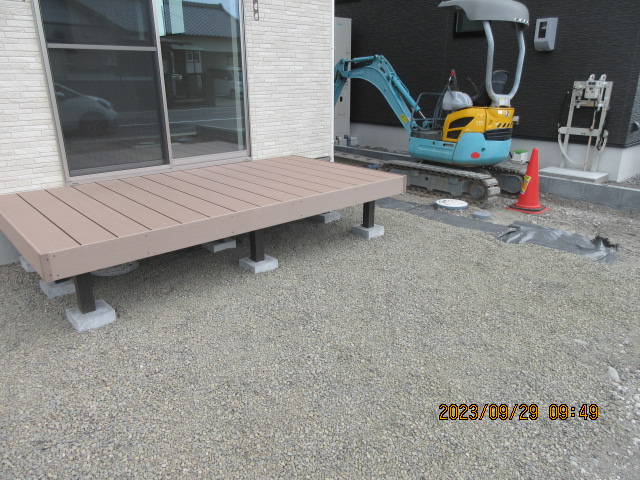完成タイル・人工木デッキテラス・サンルーム土間・砕石・芝生物置・倉庫焼津市
