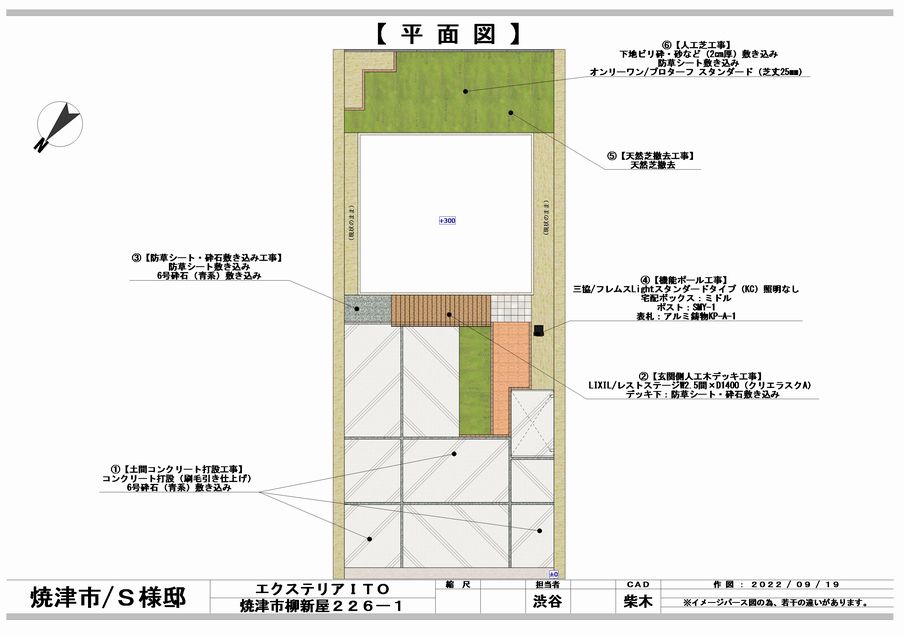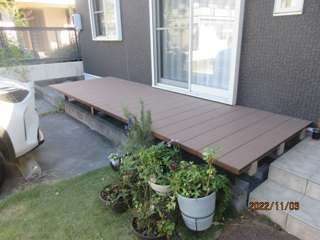 完成タイル・人工木デッキポスト・表札類土間・砕石・芝生焼津市