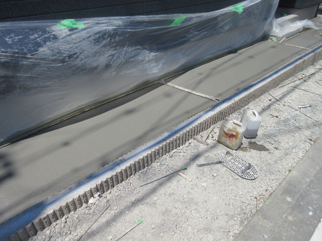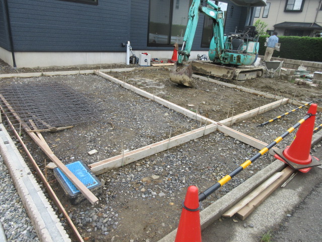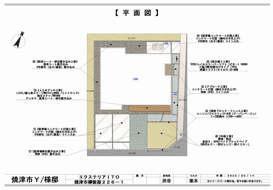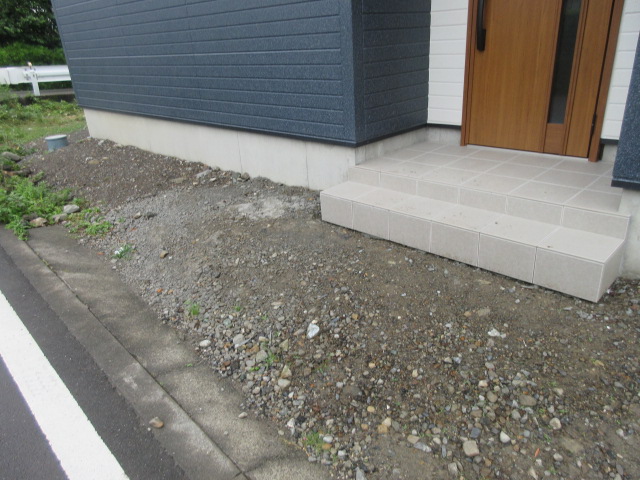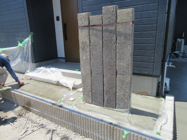 施工中アプローチ工事タイル・人工木デッキフェンス類ポスト・表札類土間・砕石・芝生焼津市