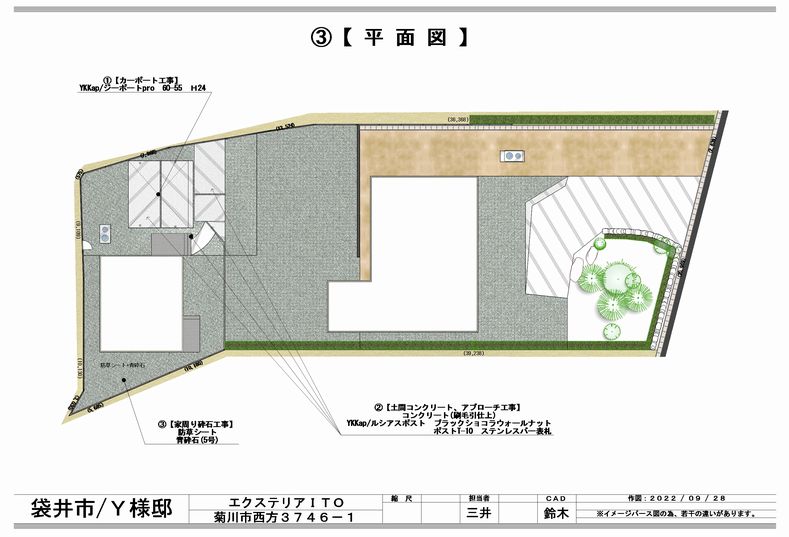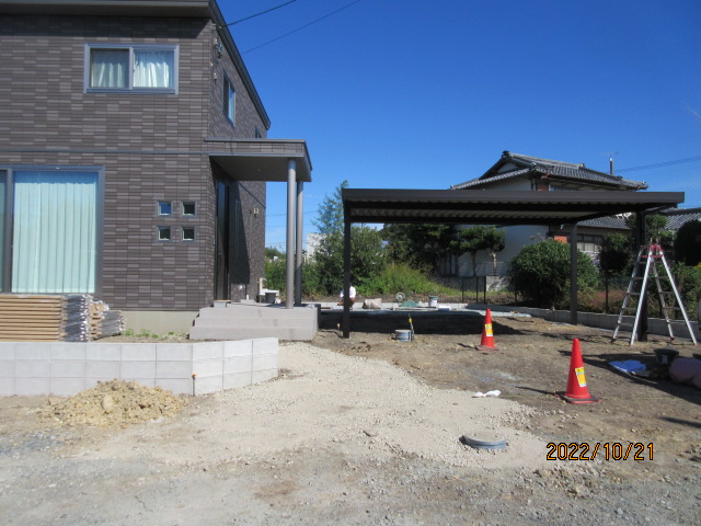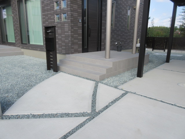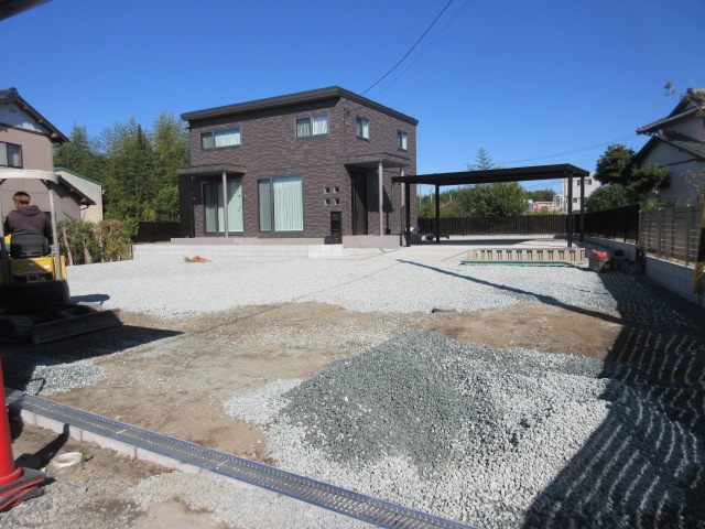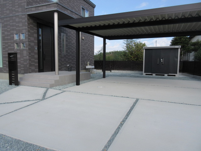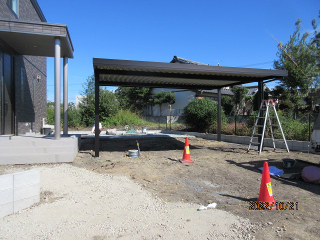 完成アプローチ工事カーポート・ガレージポスト・表札類土間・砕石・芝生袋井市