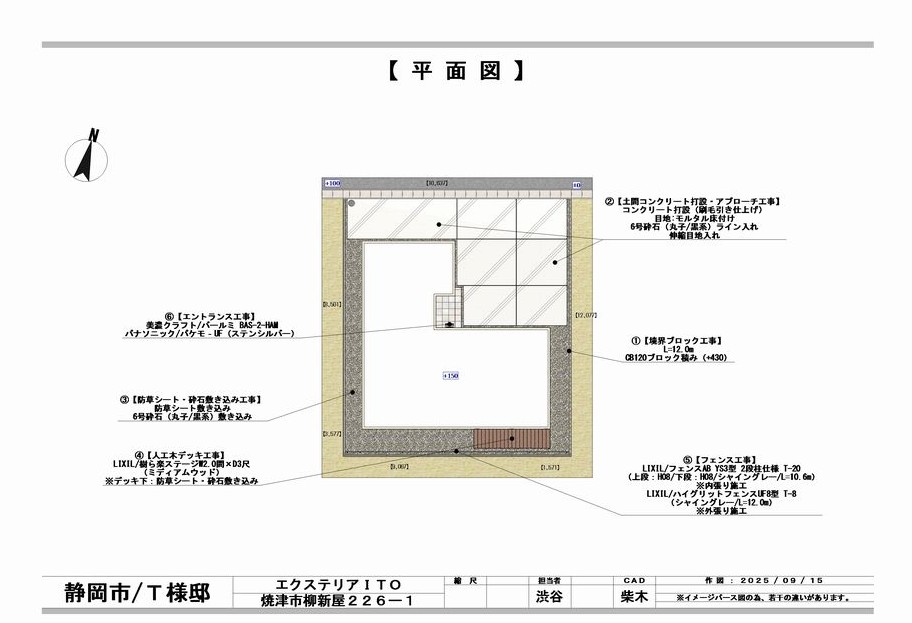 完成アプローチ工事タイル・人工木デッキフェンス類ポスト・表札類土間・砕石・芝生外構全般静岡市