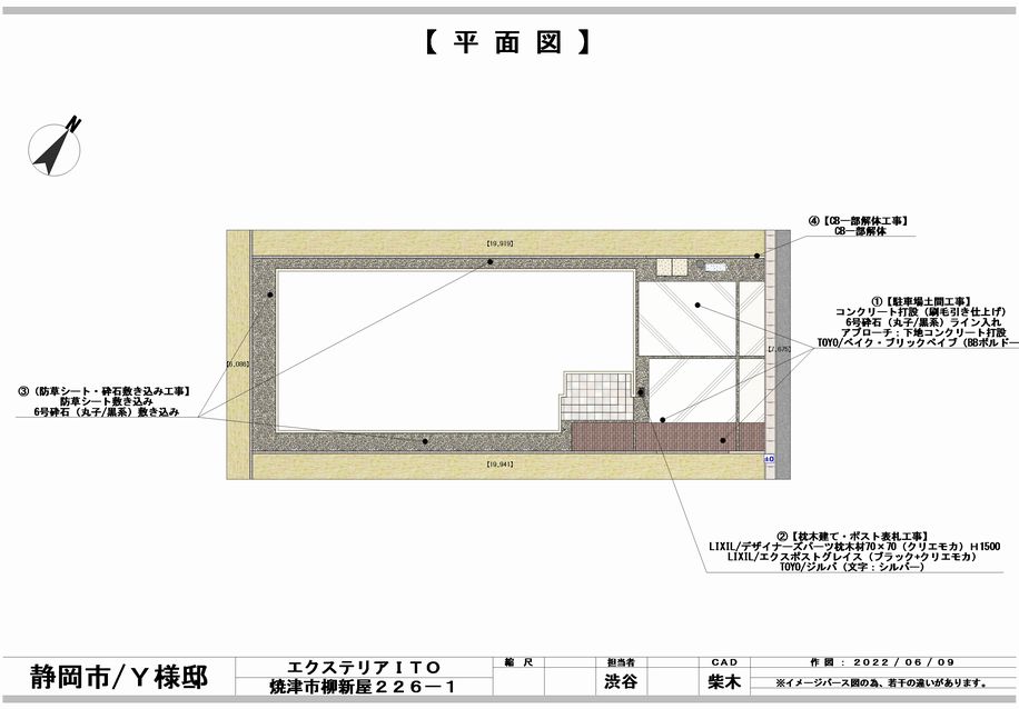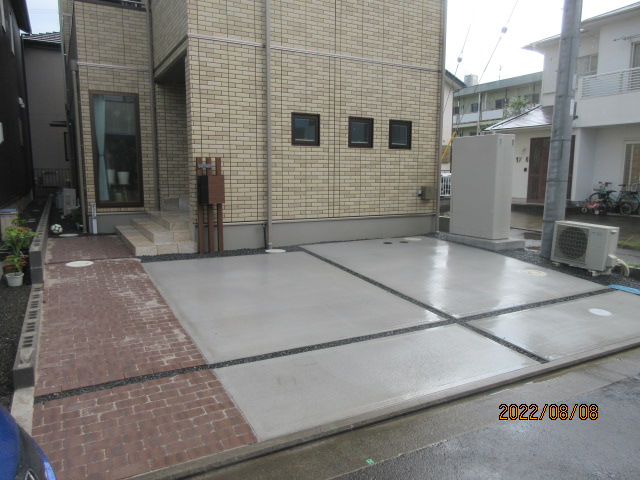 完成アプローチ工事ポスト・表札類土間・砕石・芝生静岡市